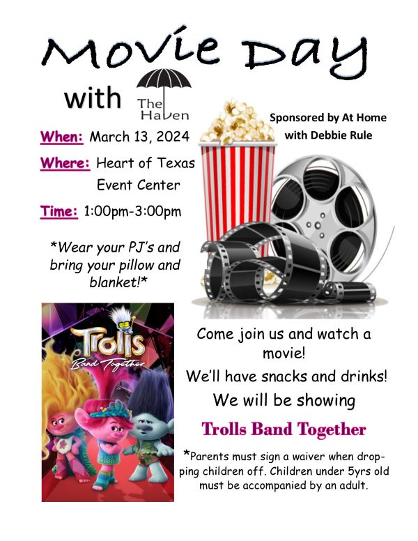 HomeEventsSpring Break Movie Day With The Haven Family Shelter Spring Break Movie Day With The Haven Family Shelter SHARE NOW Tue, Mar 5 at 8:00am - Wed, Mar 13 at 5:00pm Add to My Calendar