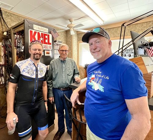 While in Brady, two of the participants in the tour stopped in at KNEL to discuss the tour and outline thbeir personal connection to donation. One visitor was a kidney transplant recepient who was joined on the Tour by his donor. The other visitor to KNEL had a son who received a heart transplant as a child.